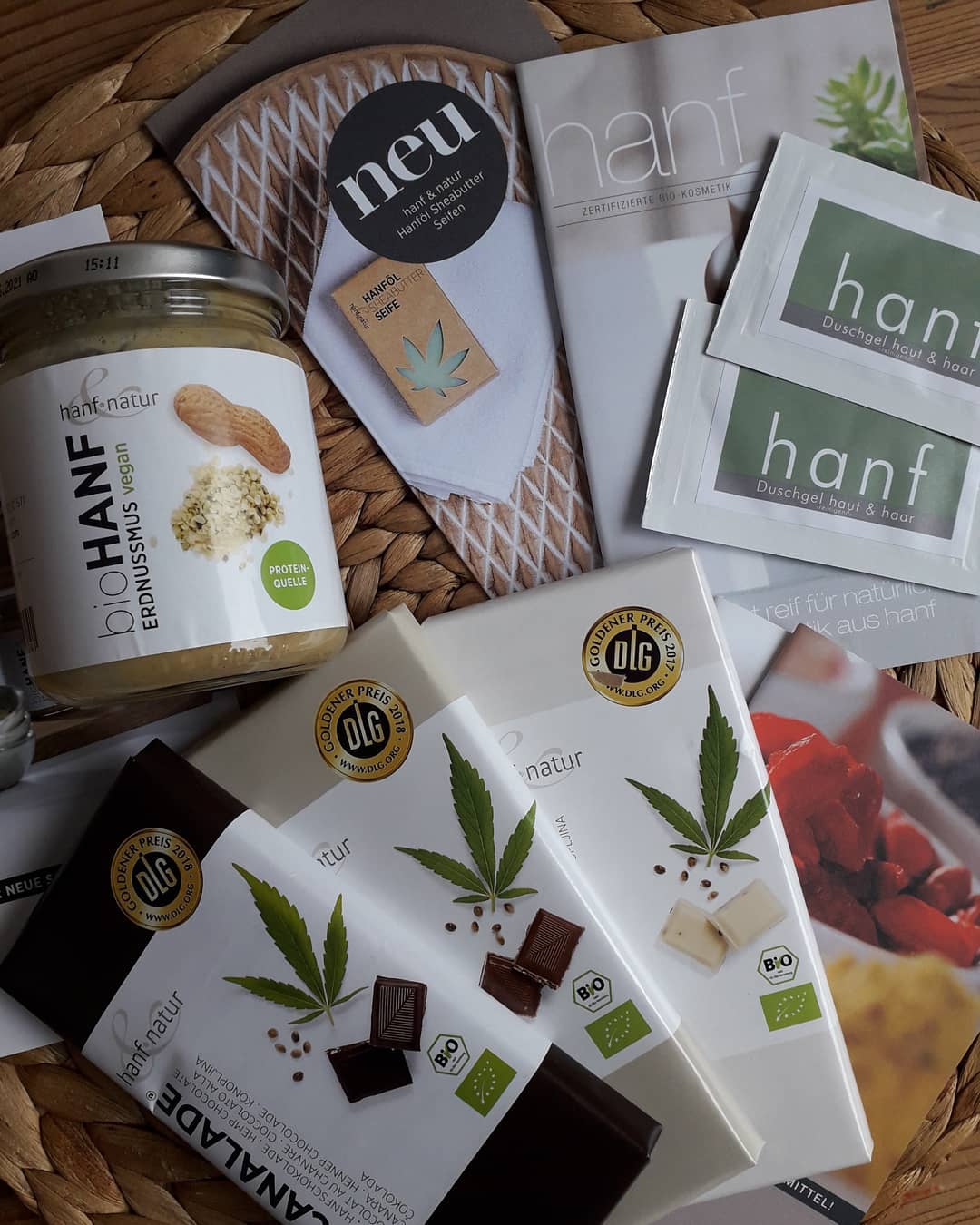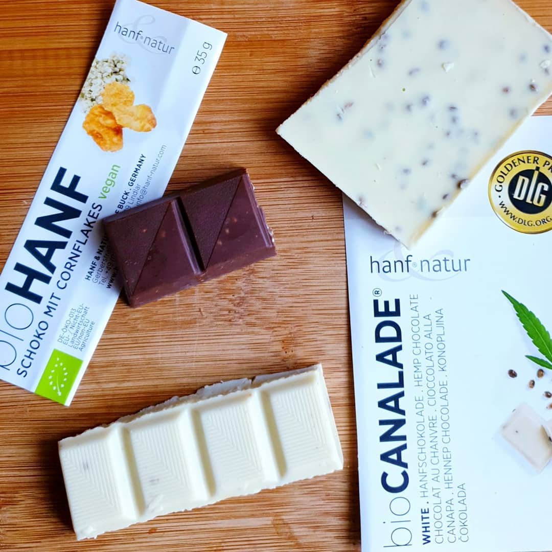 Die Schokolade (sowohl Vollmilchschokolade als auch weiße Schokolade) war schön zartschmelzend und von sehr guter Qualität. Darüber hinaus haben die kandierten Bio Hanfsamen in der Schokolade wunderbar knusprig geschmeckt! Unsere Lieblingssorten waren die >Bio Canalade weiße Hanfschokolade< und der >Bio Hanf Schokoriegel