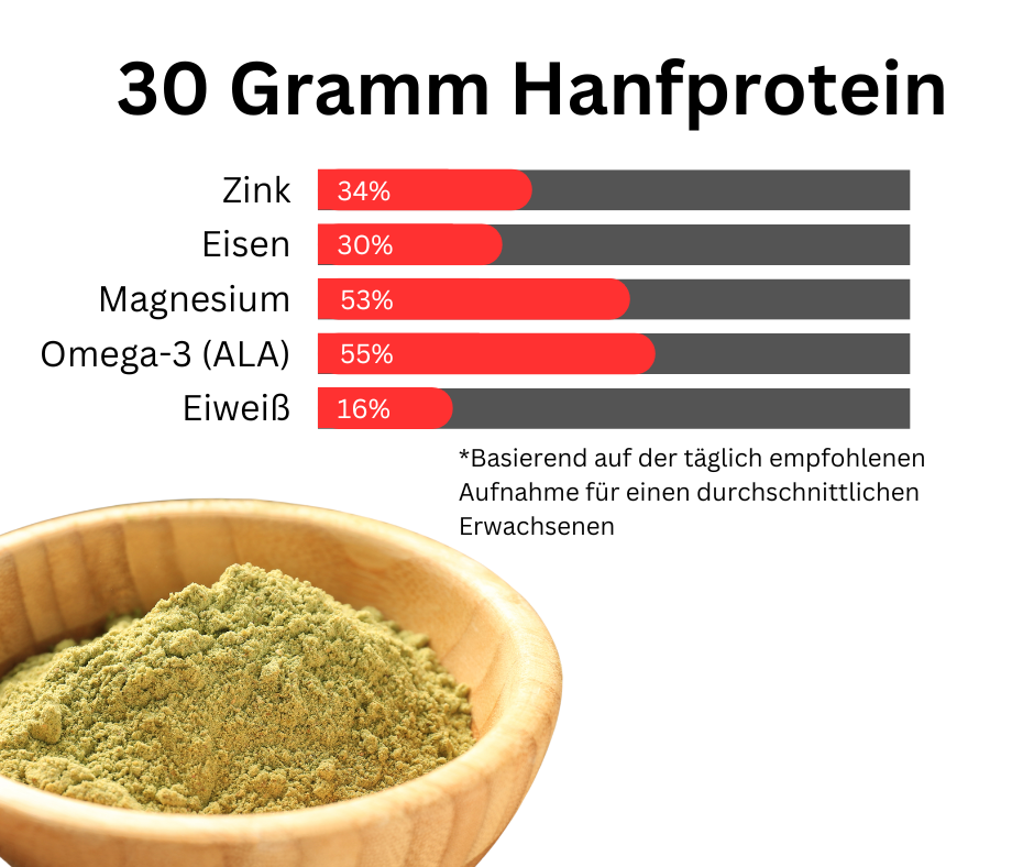 Die im Beispiel oben angeführten Prozentzahlen "30 Gramm Hanfprotein" beziehen sich auf diese Werte: